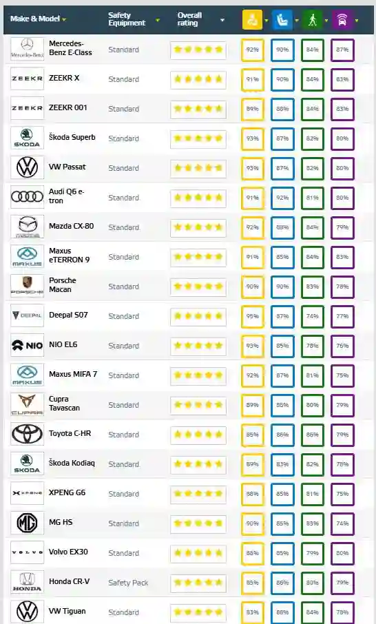 Названы самые безопасные автомобили в мире по итогам 2024 года